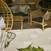 Flisen har en "specialfas", hvilket giver en diskret og elegant overgang mellem fliserne. For at skabe en smuk kontrast til den lyse sandfarve, kan du overveje at anlægge bede omkring terrassen med sorte granitskærver. Det fremhæver flisernes varme nuance.