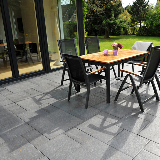 Eksklusivt finish: Flammet overflade giver et naturligt farvespil. Coated overflade: Reducerer indtrængning af snavs og alger. Moderne format: Sto...