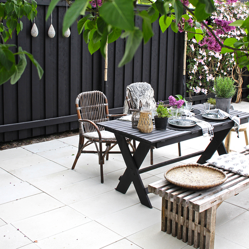 De ikoniske kvadratiske og rektangulære betonfliser fås i flere tykkelser og farver fra klassisk lysegrå til sort antracit og varme sandtoner. De store modulmål skaber rolige flader omkring udekøkken og loungeområder, og den plane top er nem at feje og møblere på.