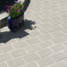 Den grå farve er praktisk og står flot til de fleste danske huse. De bølgede kanter gør, at fugerne træder tydeligere frem, hvilket skaber et smukt spil i overfladen. Kombinér eventuelt med en mørkere kantsten for at ramme arealet ind.