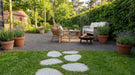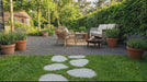 Disse trædesten er alsidige og kan bruges både som en 'stepping stone'-sti direkte i græsplænen eller som trædeflader i et bed dækket af sorte skærver eller stenmel. Tykkelsen på ca. 3 cm gør dem robuste nok til almindelig gangtrafik.