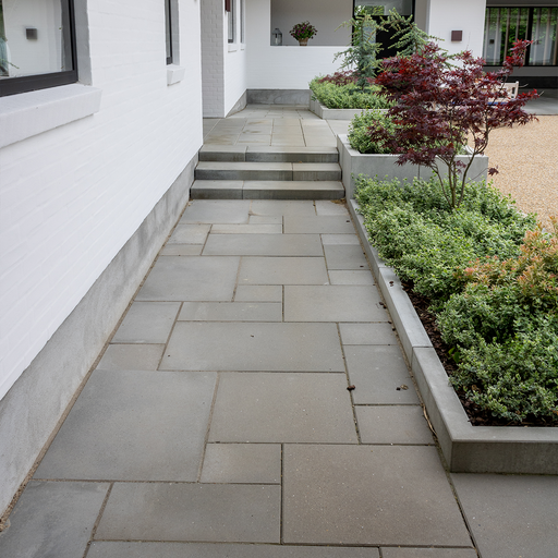 Det stærkeste udtryk opstår ofte, når materialer mødes. Indram en stor keramisk terrasse med et smalt bånd teglklinker for varme kontraster. Bryd en flade af betonfliser med kvadratiske indlæg af granit ved spisepladsen. Skab naturlig overgang til blomsterbede med brudfliser eller bløde gruszoner fra stenmel & grus. Skal der niveauspring til, matcher granittrin og støtteløsninger under støtte & læmure de fleste flisematerialer.