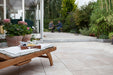 Travertin adskiller sig markant fra betonfliser ved sit levende farvespil. Ingen fliser er ens, og netop variationen i de lyse, sandfarvede toner skaber en terrasse, der aldrig bliver kedelig at se på. Stenen er behagelig at gå på med bare tæer om sommeren, da natursten ikke bliver lige så brændende varme som mørk beton eller granit.