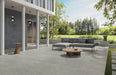 Drømmer du om en terrasse, der oser af luksus og kræver minimalt arbejde? Arkistone Dark i 80x80 cm er det oplagte valg. De store fliser minimerer antallet af fuger, hvilket giver et roligt og sammenhængende visuelt udtryk. Den mørke nuance skaber en smuk kontrast til havens grønne farver og moderne husarkitektur.
